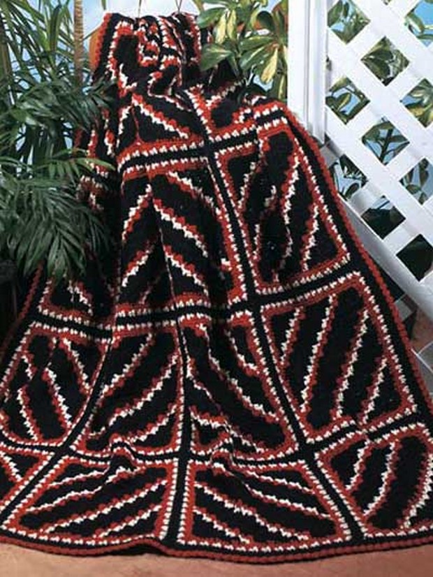 This Navajo diagonal square is probably the continuation of the very first project that we have had started with. It has again got that dull and darker color scheme which makes it ideal for the extreme winter season. Thick double stitch pattern is used in here. All of these crocheted projects inspired from the afghan art and traditions are worldly acclaimed and people really like them. They are getting more and more appreciation with every passing day in the West. To try out these afghan crochet plans you have to be very well equipped with all basic skills and obviously some inspiration that we have sorted out right here for you.